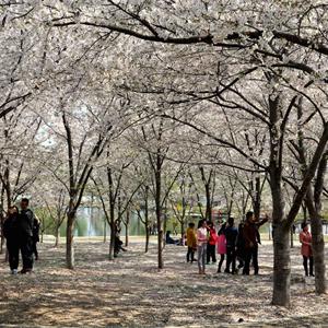 千米樱堤:位于公园东湖东北岸,2015年始建,主要品种为染井吉野及公园自主培育的山樱,花期3月下旬。目前200余株樱花已逐渐形成水岸景观效果。游客由公园东门入园,可以选择沿路穿行其中,也可步行到东湖南岸眺望。  详情>>